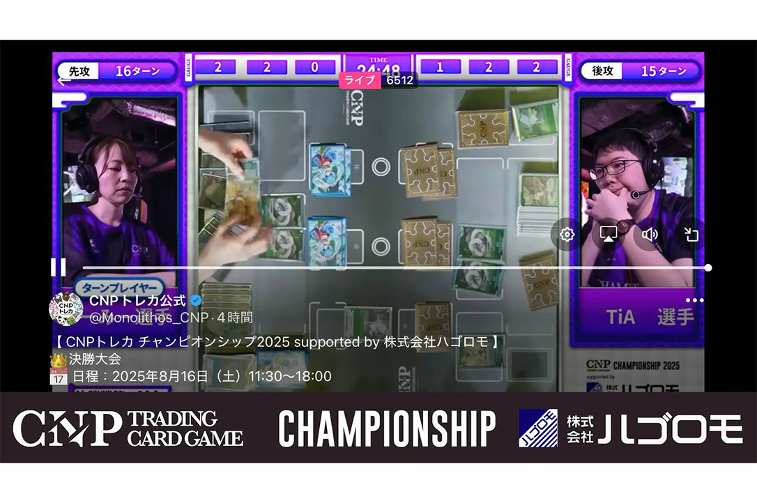 CNPトレカの全国大会、決勝戦。モノリス株式会社様よりご依頼いただき、弊社で決勝戦のバトルを進行演出・配信を実施致しました。